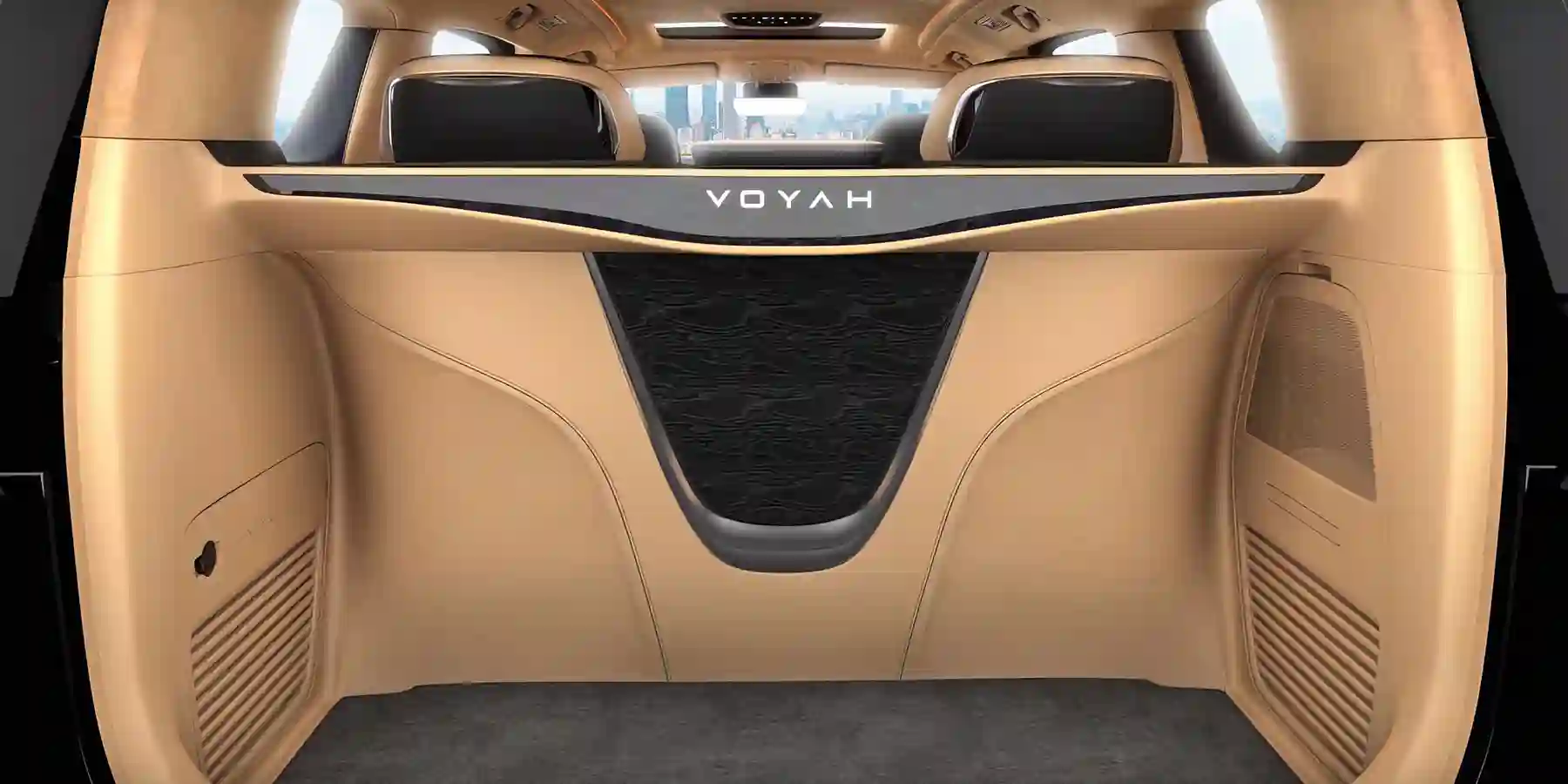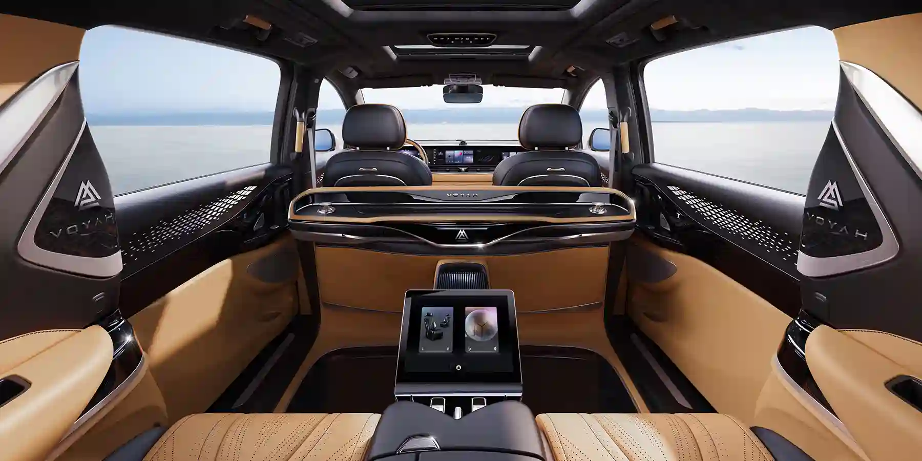 VOYAH DREAM FIRST оснащен тремя инновационными мультимедийными экранами суммарной шириной 1 400 мм (диагональю 12,3 дюйма каждый), с эксклюзивными функциями на каждом дисплее, а также дополнительным выдвижным дисплеем диагональю 34 дюйма для пассажиров второго ряда и дисплеем в заднем подлокотнике для управления функциями комфорта.